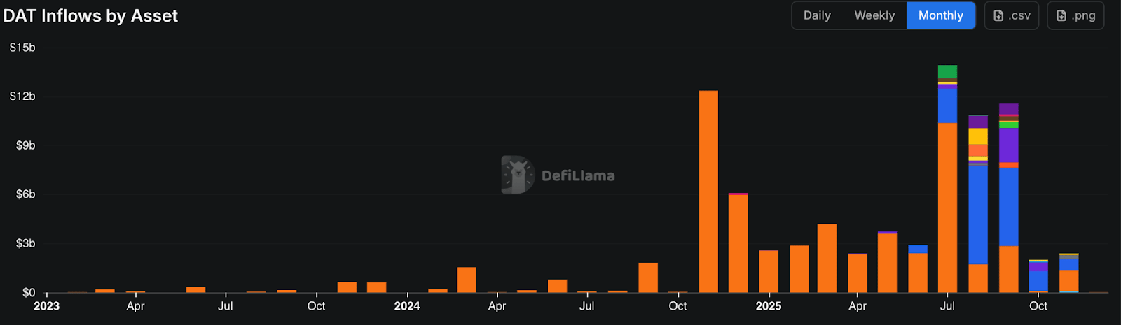 Si on dézoome un peu et qu’on regarde les achats de cryptomonnaies par les entreprises, on voit que le rythme diminue également depuis cet été :
