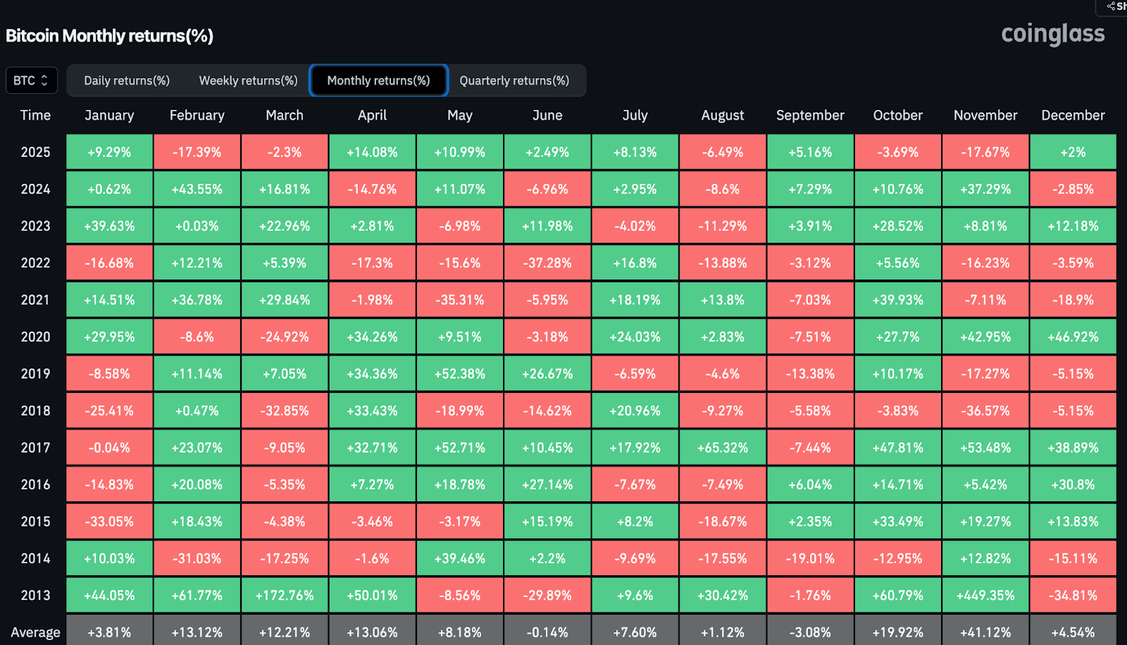 Avec une baisse d’environ 18% en novembre, le Bitcoin vient de vivre son mois le plus baissier de 2025 :
